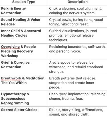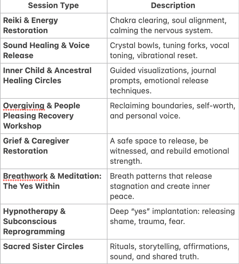 The Yes Center™ is a sacred wellness and transformation space where individuals come to release emotional pain, restore the nervous system, reconnect to spirit, and activate their inner “Yes.” It is not just a healing studio - it is an energetic movement: